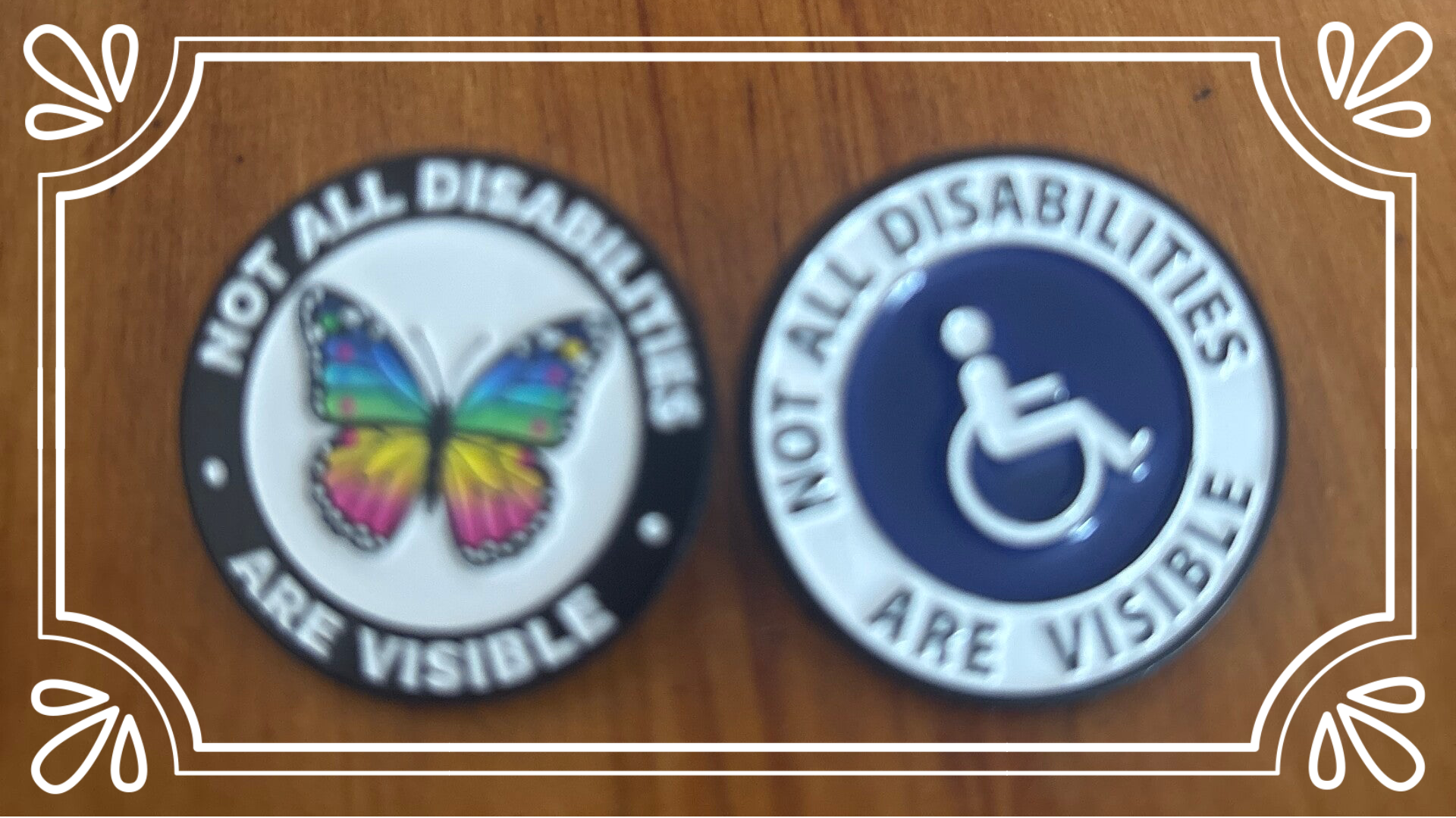 The third photo is not all disabilities are Visible pins and there are two pins in each bag